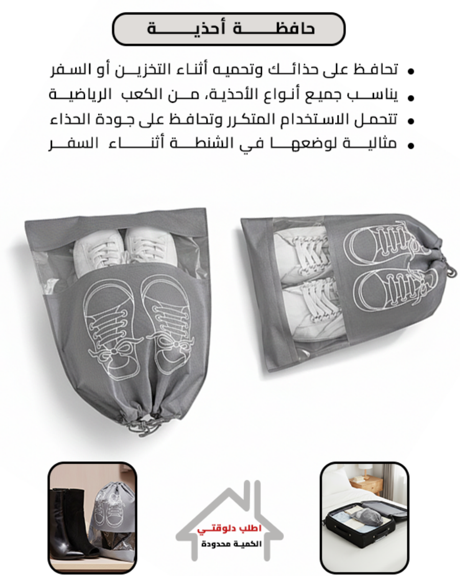 ✔️ تحافظ على حذائك من الأتربة والخدوش، وتحميه أثناء التخزين أو السفر