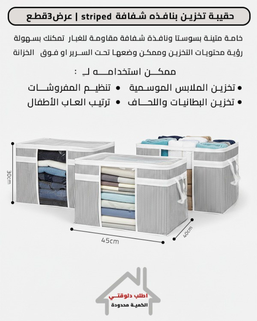 الرئيسية / حقيبة تخزين بنافذه شفافة striped | عرض3قطع