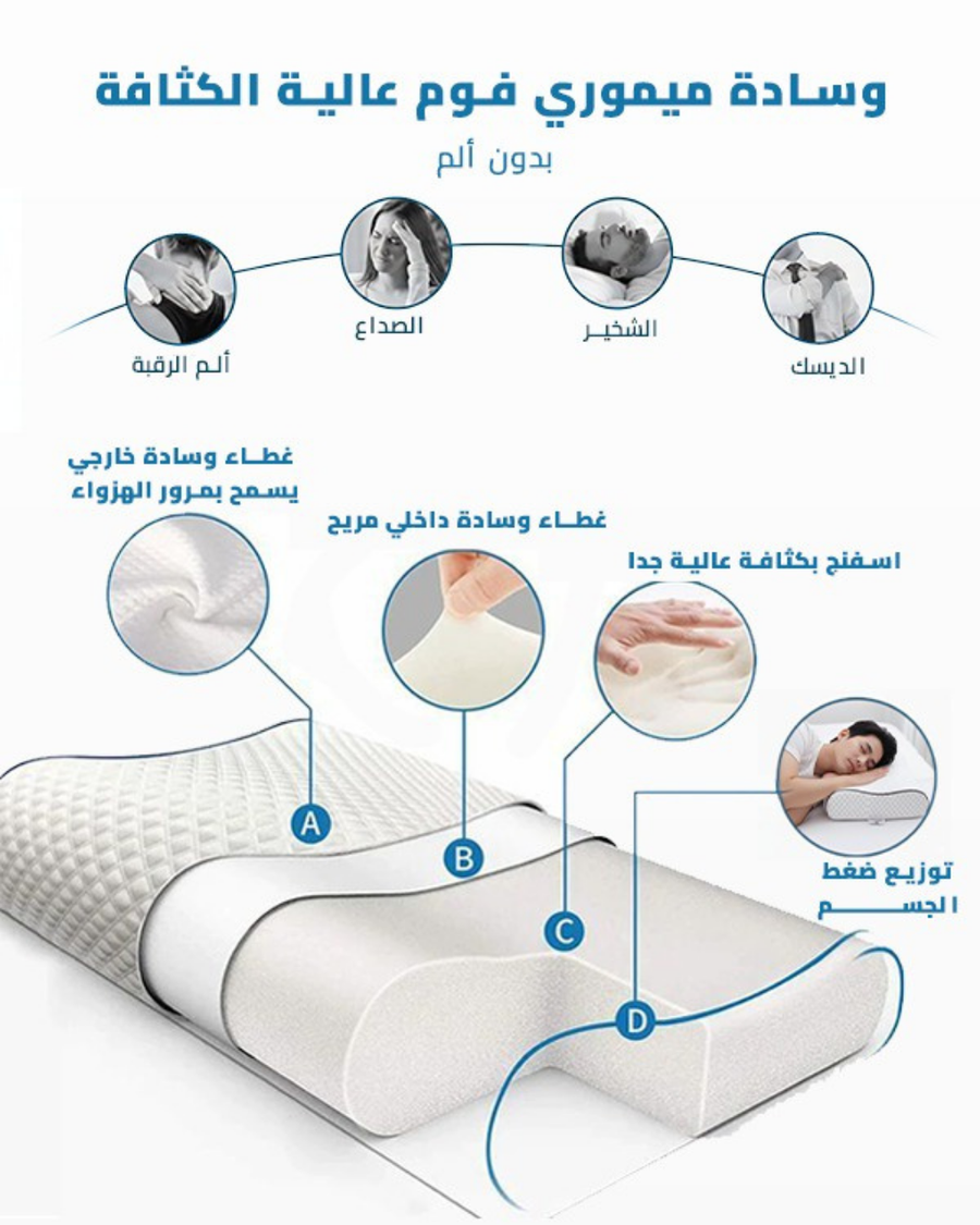 مرونة استثنائية: مهما ضغطت عليها، مخدتنا بترجع لشكلها الطبيعي تمامًا، عشان تضمن لك دعم متواصل ومريح طول الليل.