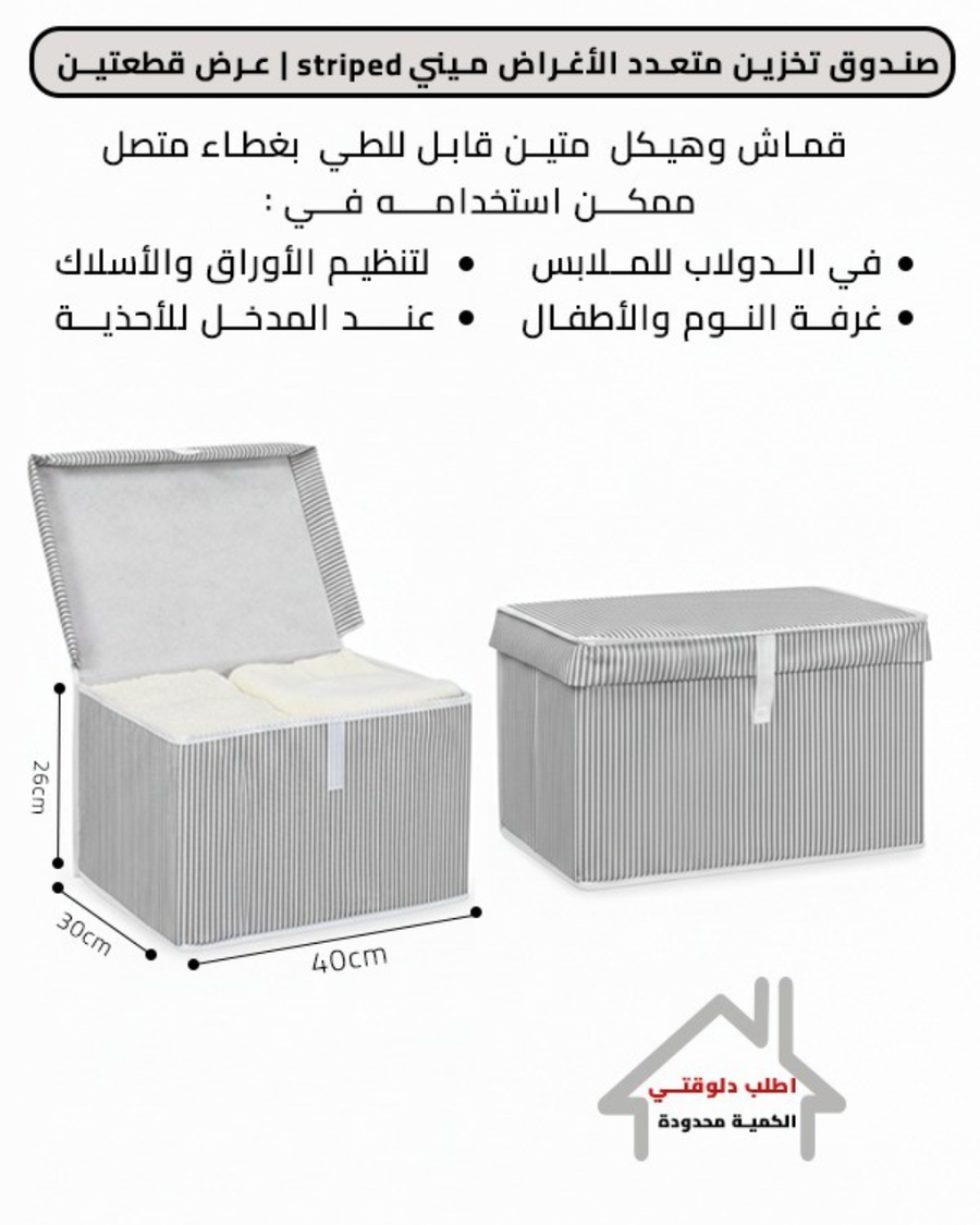 يسمح لك بتنظيم أغراضك، ويمكنك طيها وتخزينها عند عدم استخدامها. الحجم: 40 × 30 × 26 سم