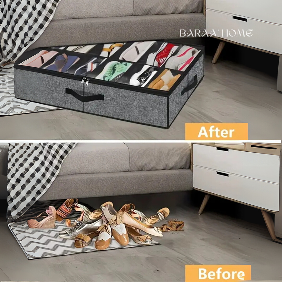 مصمم خصيصًا لتنظيم وتخزين الأحذية تحت السرير أو في أي مساحة ضيقة، بشكل أنيق ومرتب.