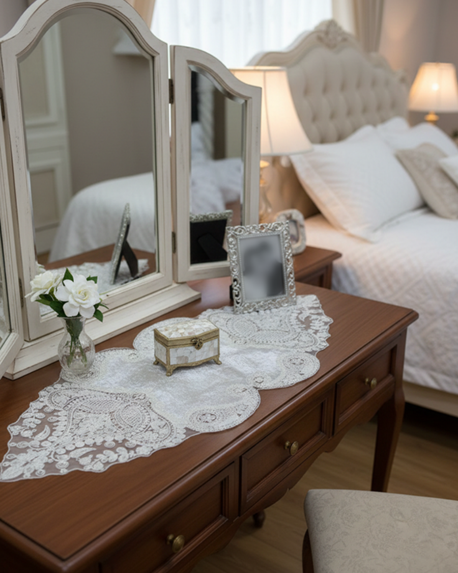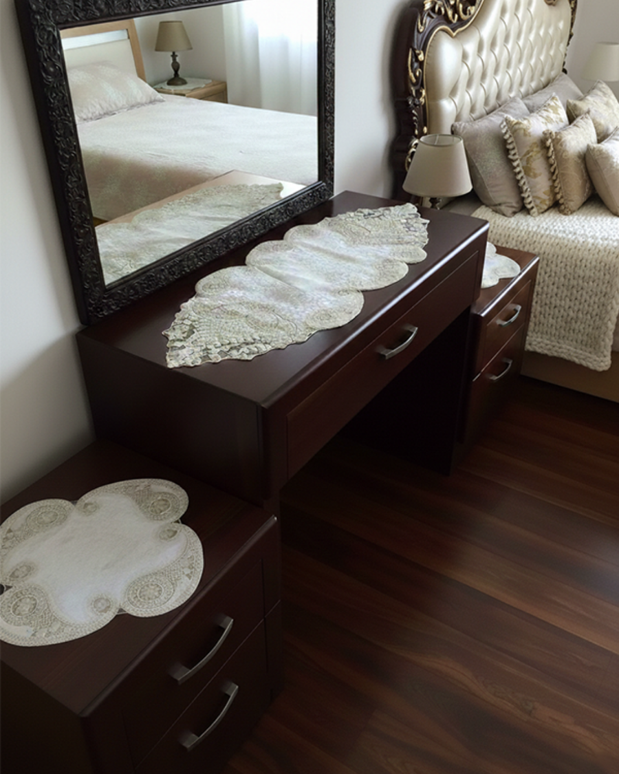 مفرش تسريحة + 2 كومود دانتيل ✨